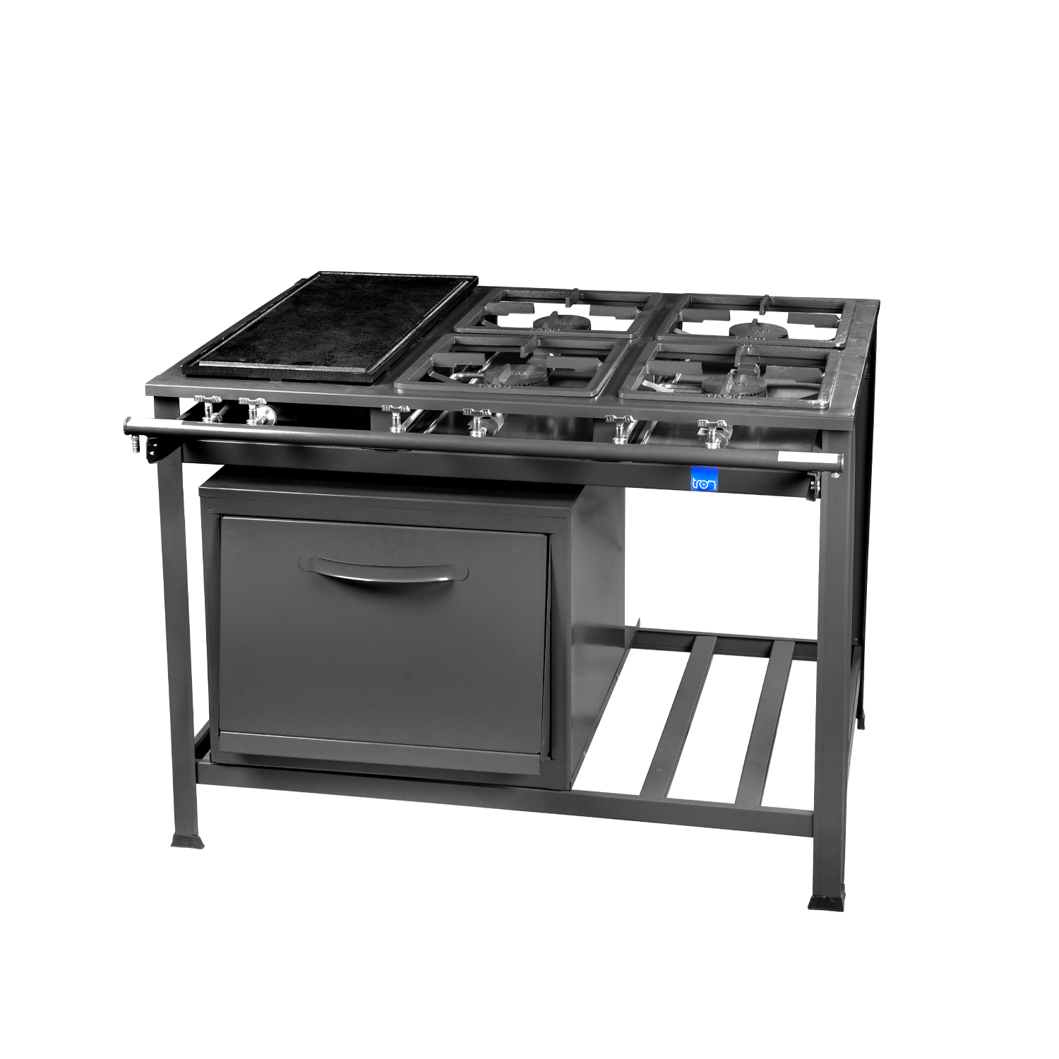 Fogão Industrial – 4 Bocas (4QS) | Forno + Chapeira | Porta Panelas | Grafite